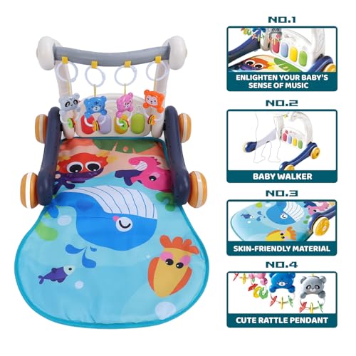 - Innovative Design: Pedal piano with a gym mat in one design, the baby playmat walker provides an interactive platform for your baby to exercise hand eye coordination and muscle strength.
