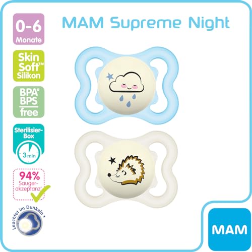 - Perfect combination – The climate-neutral MAM Supreme combines the best of all MAM dummies. Developed with experts, it significantly reduces the risk of tooth misalignment. The button glows in the dark
