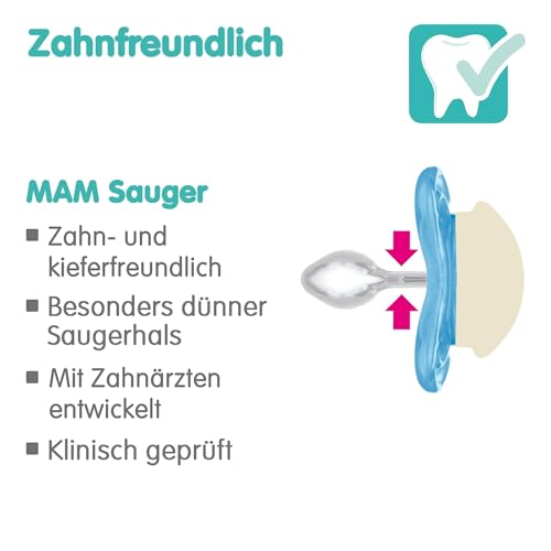 - Tooth-friendly shape: The particularly thin and flexible teat neck of the MAM Supreme adapts perfectly to baby's jaw and thus prevents tooth misalignment. The MAM Supreme is recommended by dentists