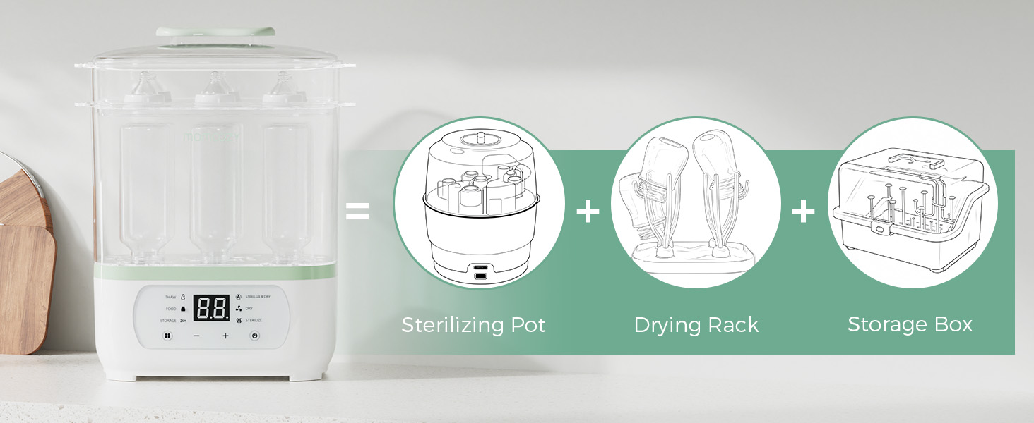 - Premium Quality and Trusted Brand – Momcozy is a trusted brand that parents rely on for their baby's feeding needs. Our bottle sterilizer and dryer is made with high-quality materials, ensuring durability and long-lasting performance. Give your baby the best with Momcozy.