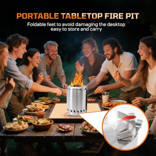 Table Top Fire Pit, Smokeless Firepit Stainless Steel, Portable Fire Pit Table Top for Camping, Outdoor and Patio Small F-ire P-it-Wood Burning/Pelletfueled