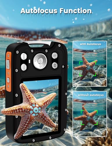 - 【4K Ultra HD & 48MP Autofocus Waterproof Camera】This waterproof camera capture 48MP HD color images, and supports 4K Ultra HD video recording to clearly record your underwater travel videos. There is no need to half-press the shutter for focusing. Simply aim the camera at the object until it comes into clear focus, and then press the shutter to capture your desired image.