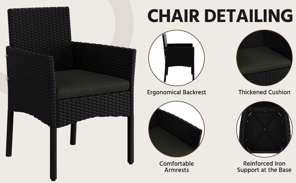 - Soft & Washable Cushions: The cushions are filled with 4 cm thick high-density foam and covered with 180g polyester, offering a soft feel while resisting deformation. The removable covers are machine washable, making it easy to refresh them between seasons
