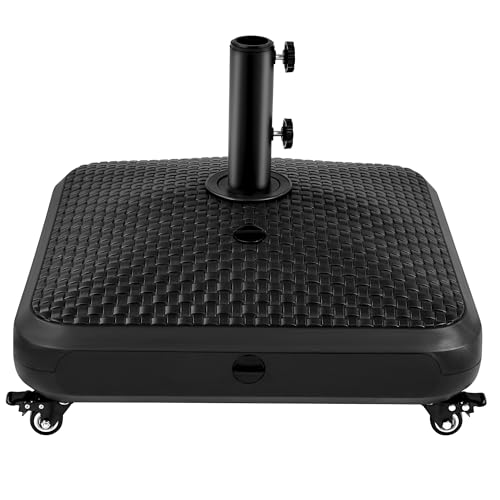 - Rattan Pattern: The rattan pattern on this rolling umbrella fillable base stand brings a touch of delight and delicacy to the otherwise tedious base. The black, finely textured PP surface blends natural aesthetics with versatility, making it a stylish match for parasols of various styles and colors