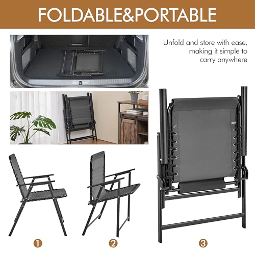 Yaheetech Folding Outdoor Chairs Set of 2 with Metal Frame, All Weather Foldable Dining Chairs with Backrest and Armrest for Garden, Lawn, Yard and Beach, Dark Grey