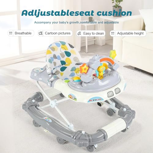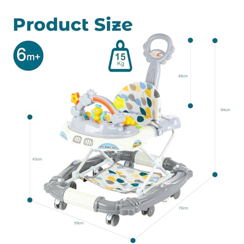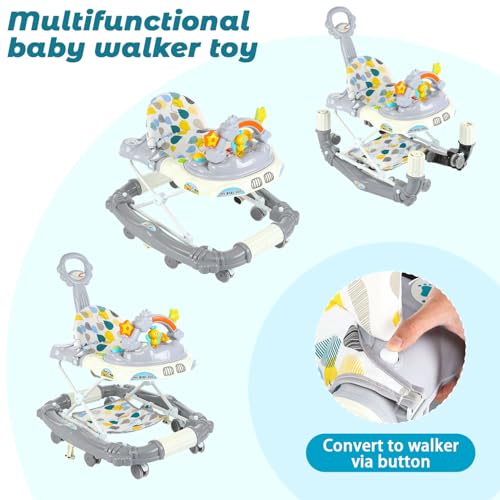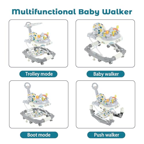 - 【4-in-1 Multifunctional Design】 This versatile baby walker transforms into 4 modes: a walker, rocker, feeding chair, and push-along walker, adapting to your baby’s developmental stages from 6 to 18 months. Perfect for learning, playing, dining, and mobility.