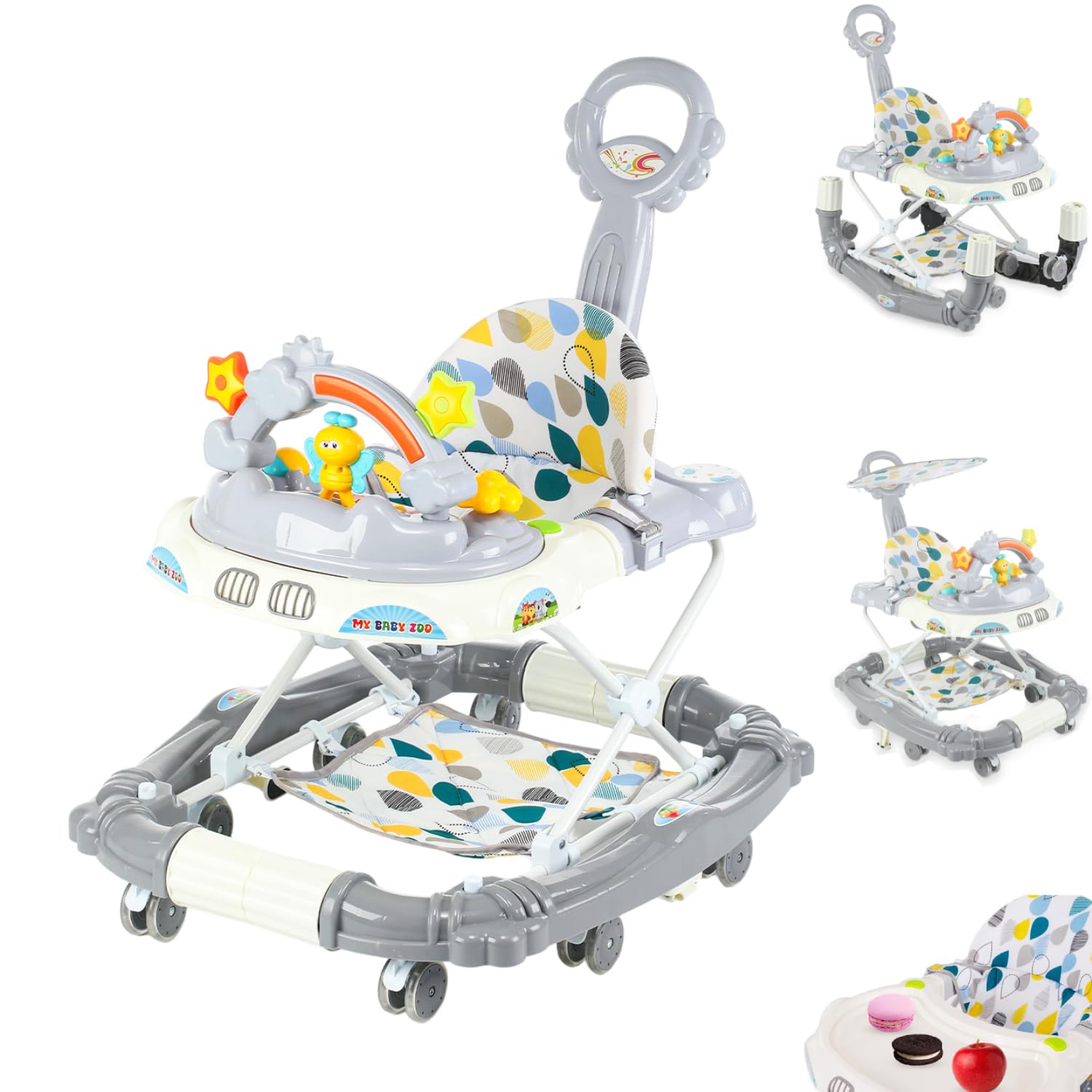 - 【Interactive Music Toy Tray】 Includes a detachable activity tray with lights, music, and playful toys to stimulate sensory development, hand-eye coordination, and cognitive skills.