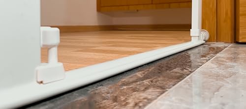 - FLAT STEP DESIGN FOR SAFETY: The unique flat step safety design minimizes tripping hazards, ensuring smooth movement for adults, children, and pets. An excellent feature for families seeking a no-drilling, pressure-fit gate.