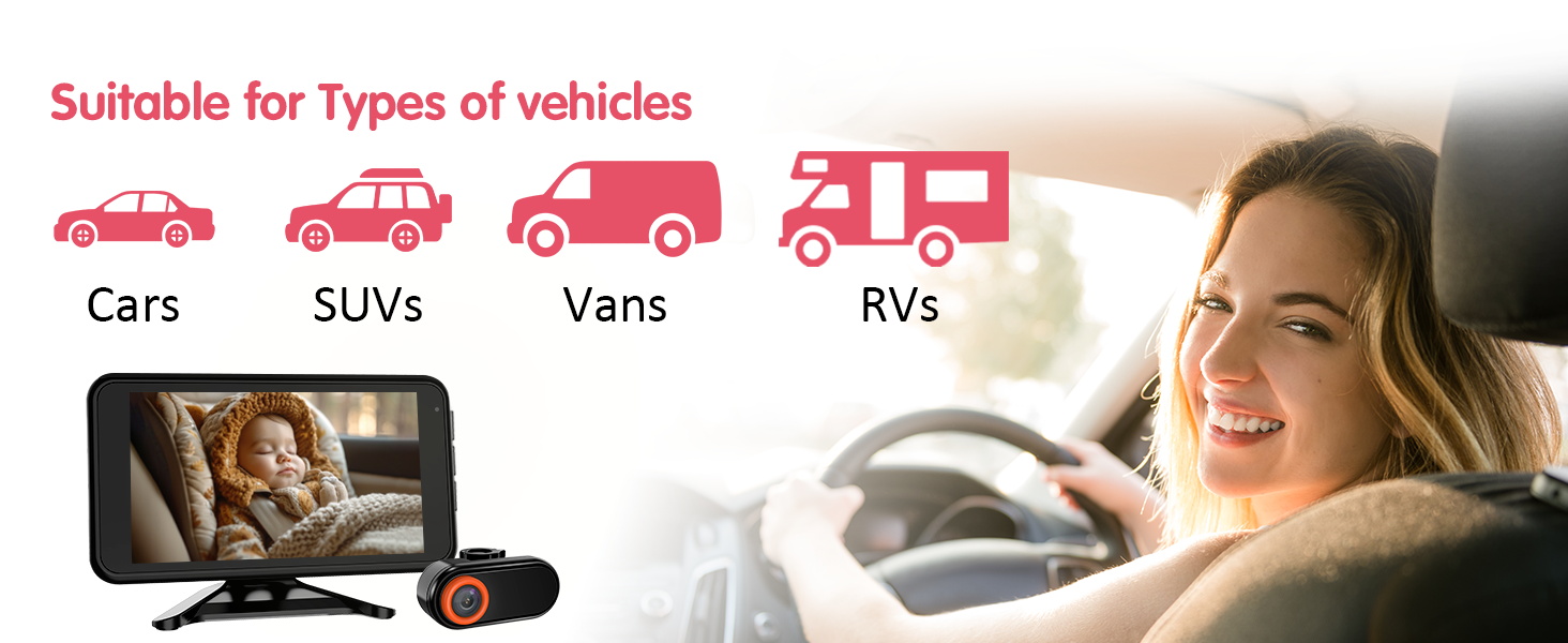 - IR Night Vision: With automatic night mode, the baby car camera for back seat keeps the image clear in low light. This car baby monitor uses infrared technology that won' t disturb your baby' s sleep, perfect for night drives.