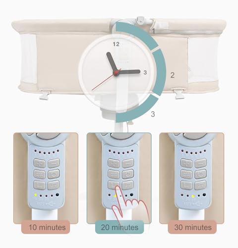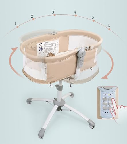 - 【Automatic Swinging and Lullaby】 This bedside crib can swing automatically by using electricity. The product comes with a remote to control the swinging amplitude, with a total of 6 gears that can be adjusted. The remote also has a timing function, and you can choose 3 swinging times. This crib also stores preset lullabies, which can soothe the baby's heart, cultivate the baby's auditory senses, and help the baby fall asleep quickly.