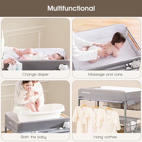 - 【Modern Look, Waterproof Surface】The sleek grey design blends seamlessly into any home interior. The waterproof surface is easy to clean and maintain, ensuring hygienic daily use for your newborn baby or infant.