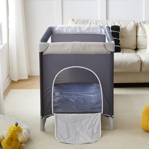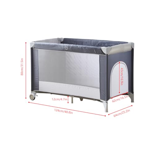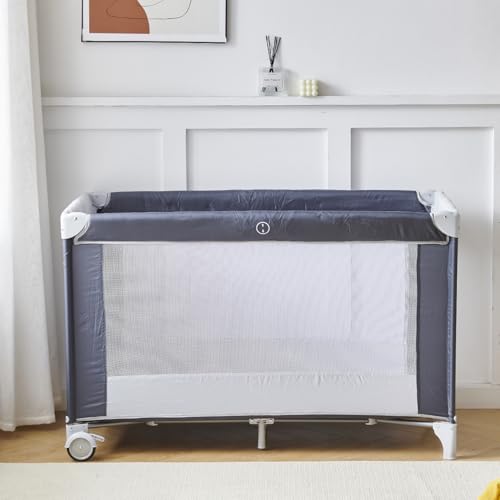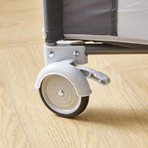 MeJa Portable Baby Travel Cot with Wheels, Foldable Baby Crib, Infant Bed for Nursery (Basic, Grey)