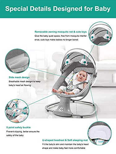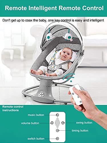 Sianldcone Electric Bluetooth Smart Baby Cradle, Next to Me Baby Bedside Crib, Convertible Co-Sleeping Bassinet, Foldable Infant Bedside Sleeper with Music, Remote, 5 Swaying Gears (HR00 Grey)