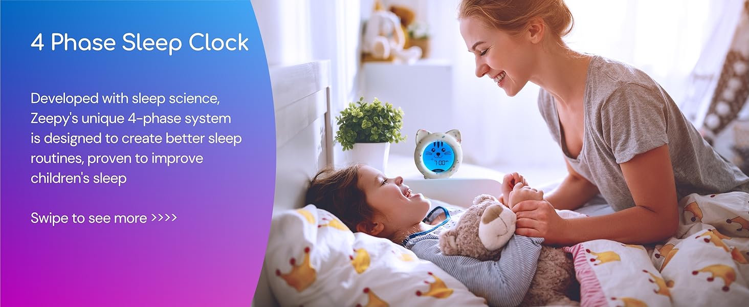 Merchant videoEnd bedtime battles! Zeepy: the first 4-Phase Sleep Trainer Clock with a unique wind-down phase. Science-backed lights for better toddler sleep, joyful mornings & consistent routines.