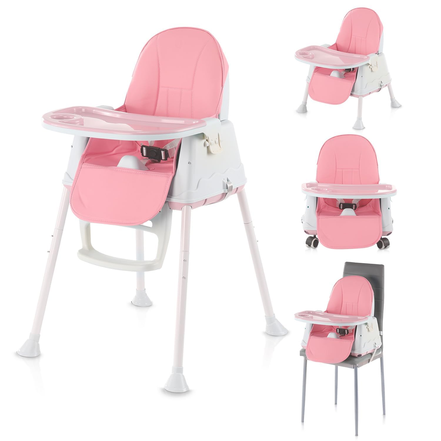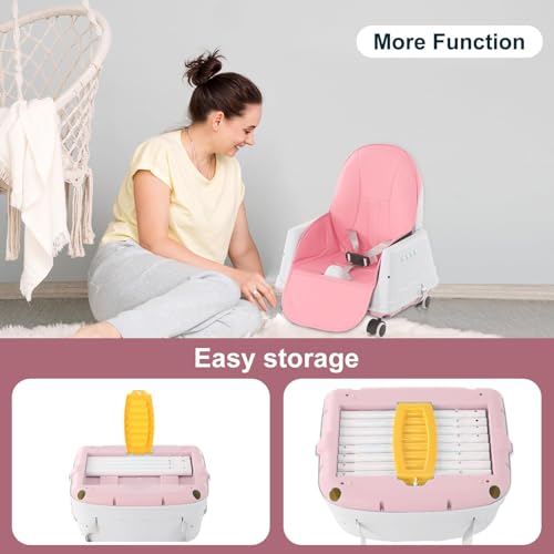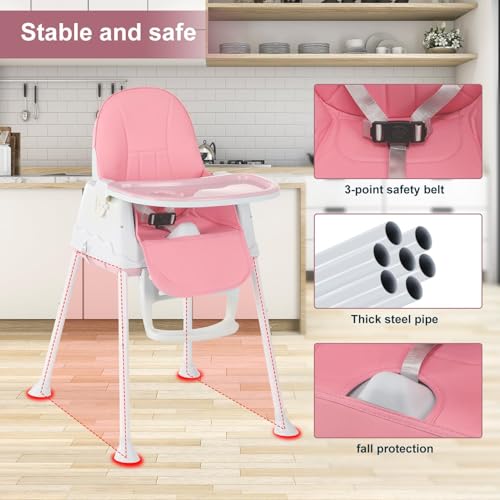 Adjustable 3-in-1 Baby Highchair Infant High Feeding Seat Toddler Table Chair,Non-Slip Chair Leg Caps,Pink (Pink)
