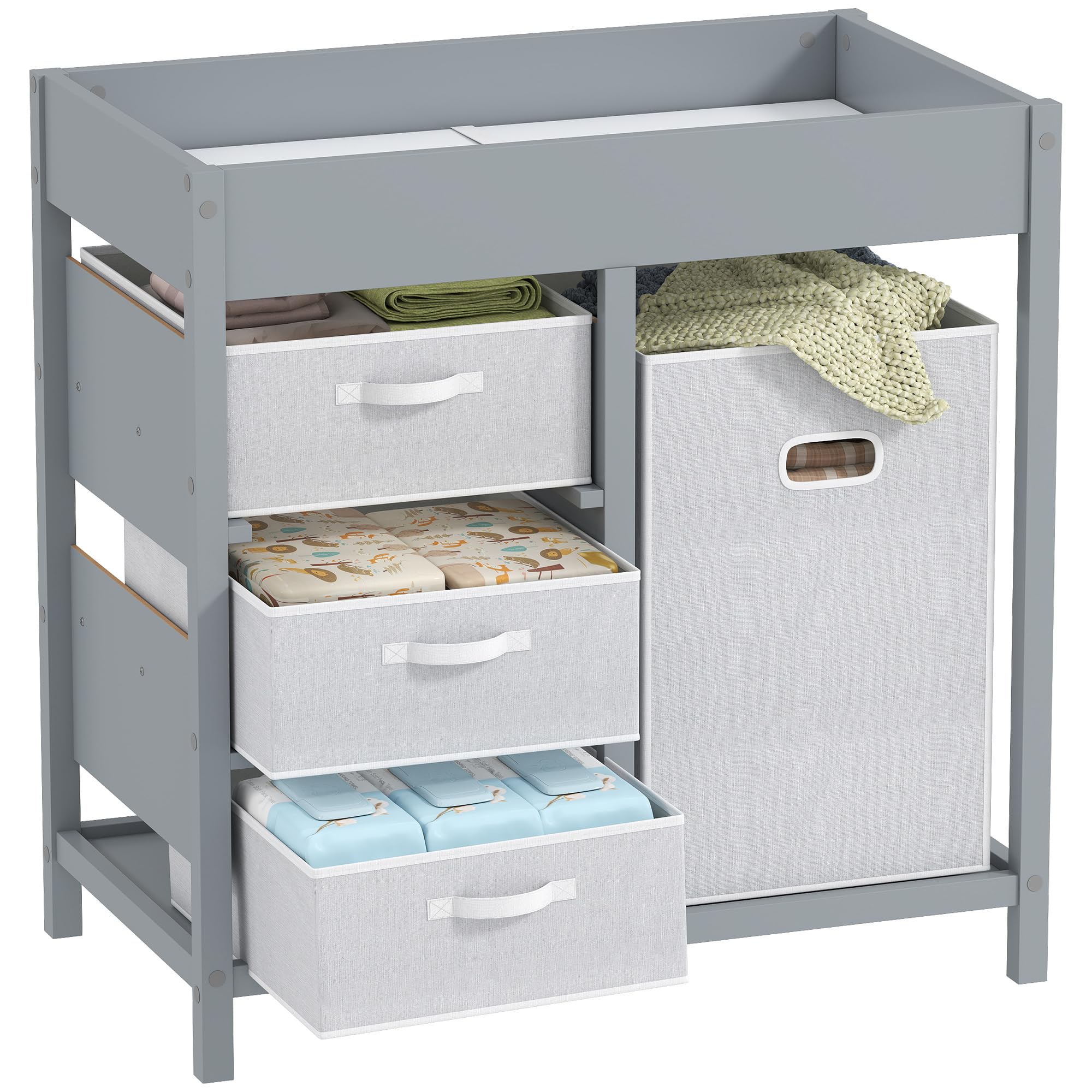 AIYAPLAY Baby Changing Table with 4 Drawers, Nursery Diaper Baby Changing Unit for 0-12 Months (max. 11kg), with Mat, Infant Care Station for Bedroom Nursery, Grey