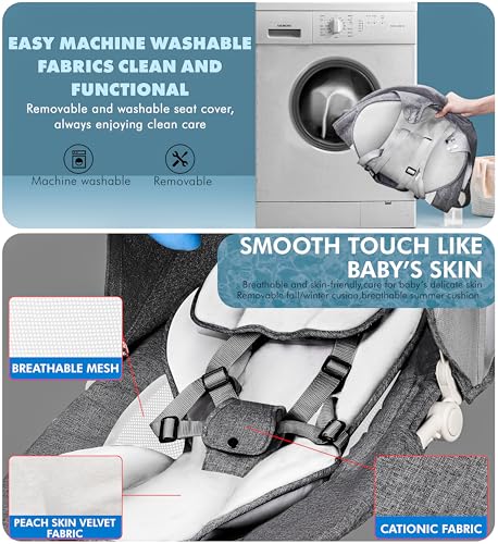 - Ideal Gift for New Parents –Available in elegant colors with plush, breathable fabrics, this baby rocker is packed with features: 5 swing speeds, Bluetooth music, 3-stage timer, detachable cushion, and 2 soft plush toys to stimulate sensory development. A perfect baby shower or newborn gift!