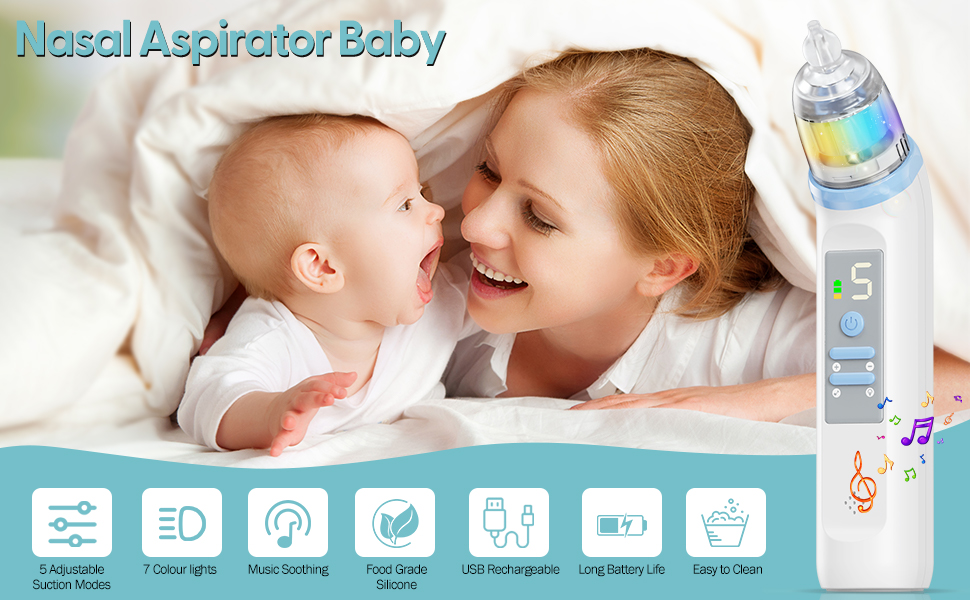 Easy to Use: The nasal aspirator is designed for safe, efficient, and comfortable mucus removal. The LED display clearly shows the current suction level and battery charge, making it simple and easy to use. Just press the power button, insert it into your baby’s nostrils, and wait for the mucus to be cleared. (Note: The nose aspirator baby does not operate while charging.)