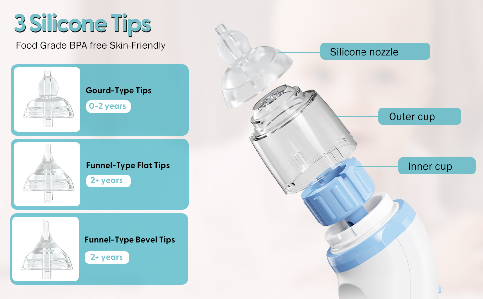 - Soft, Safe Silicone Tips: Comes with 3 BPA-free silicone tips in different shapes and sizes to suit newborns and toddlers. The tips are soft and flexible to ensure a comfortable experience for your child. Made from child-safe materials with no latex or harsh edges.