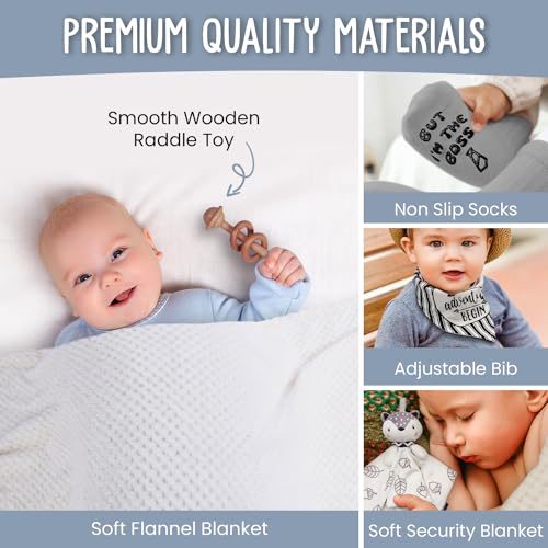 - ✔️ SUPERIOR QUALITY MATERIALS – These baby shower gifts for boys and girls are made with carefully selected, high-quality materials that are 100% safe for the little one! The blanket is soft and warm, the wooden toy is smooth with no sharp edges, and the socks are warm and fuzzy, perfect for pampering your baby!