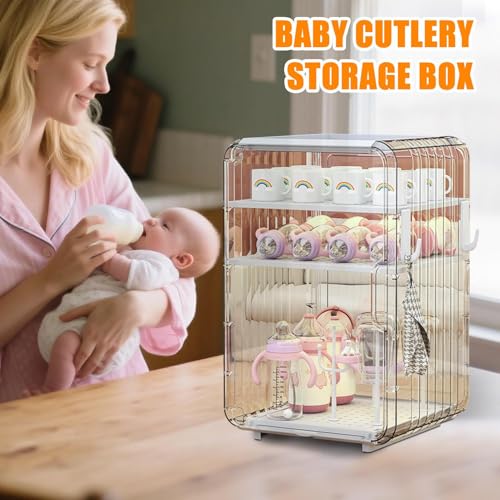 Babys Bottles Storage – Toddler Cutlery Organizer | Portable Baby Bottle Dry Rack | Vertical Dustproof Cups Holder With Cover For Kitchen Table Fridge Closet Bedroom Dorm Room Pantry Nursery