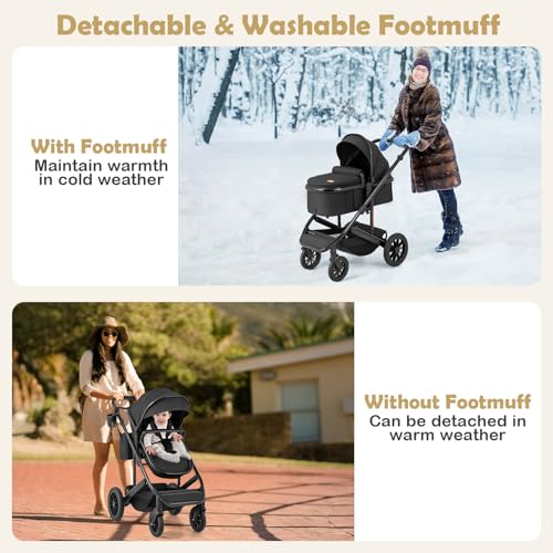 - 【Convertible Design】This versatile stroller adapts seamlessly to your child’s growth. The reversible seat allows your baby to face you for bonding moments or switch forward to explore the world, ensuring comfort and engagement at every stage. The included bassinet mode offers a cozy, flat-lying space ideal for newborns’ on-the-go rest.