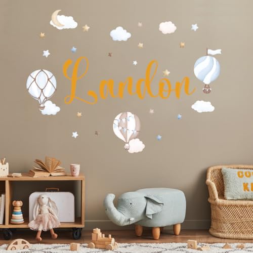 Custom Baby Name Wall Decal – Personalized Hot Air Balloon & Cloud Nursery Stickers