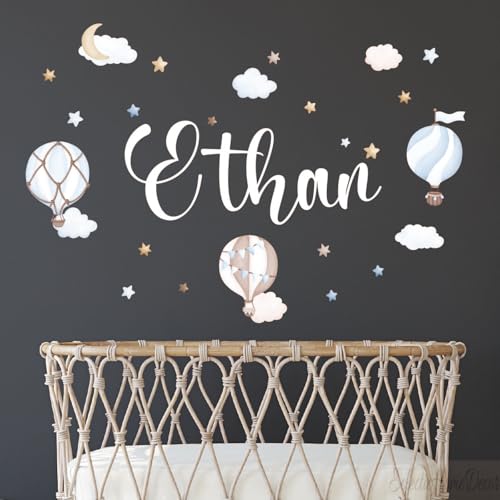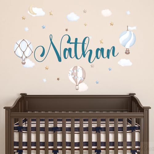 Custom Baby Name Wall Decal – Personalized Hot Air Balloon & Cloud Nursery