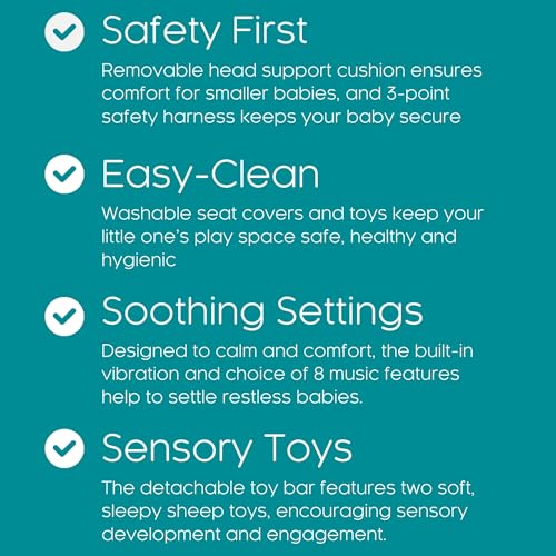 - Soothing adjustable vibration function: The adjustable vibration feature offers customised soothing, helping to calm your baby.