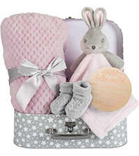 - Personalised baby girl hampers gift basket – The blanket and comforter come beautifully presented in a coordinated gift hamper basket which can be used for storage or keepsakes.