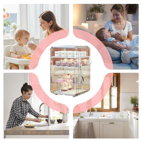 SVCEQZE Baby Bottle Organizer, 39.5x25x24cm Kids Cutlery Organize-r, Clear Bottle Holder, Vertical Dustproof Cups Holder With Cover, Toddler Supplies O-rganizer For Table Fridge Nursery Bedroom Close