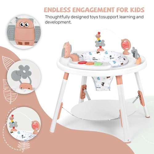 - 【Interactive Toys:】 Equipped with a variety of removable toys, this activity center encourages sensory exploration and fine motor skills. The bright colors, textures, and sounds stimulate your baby’s curiosity and cognitive development.