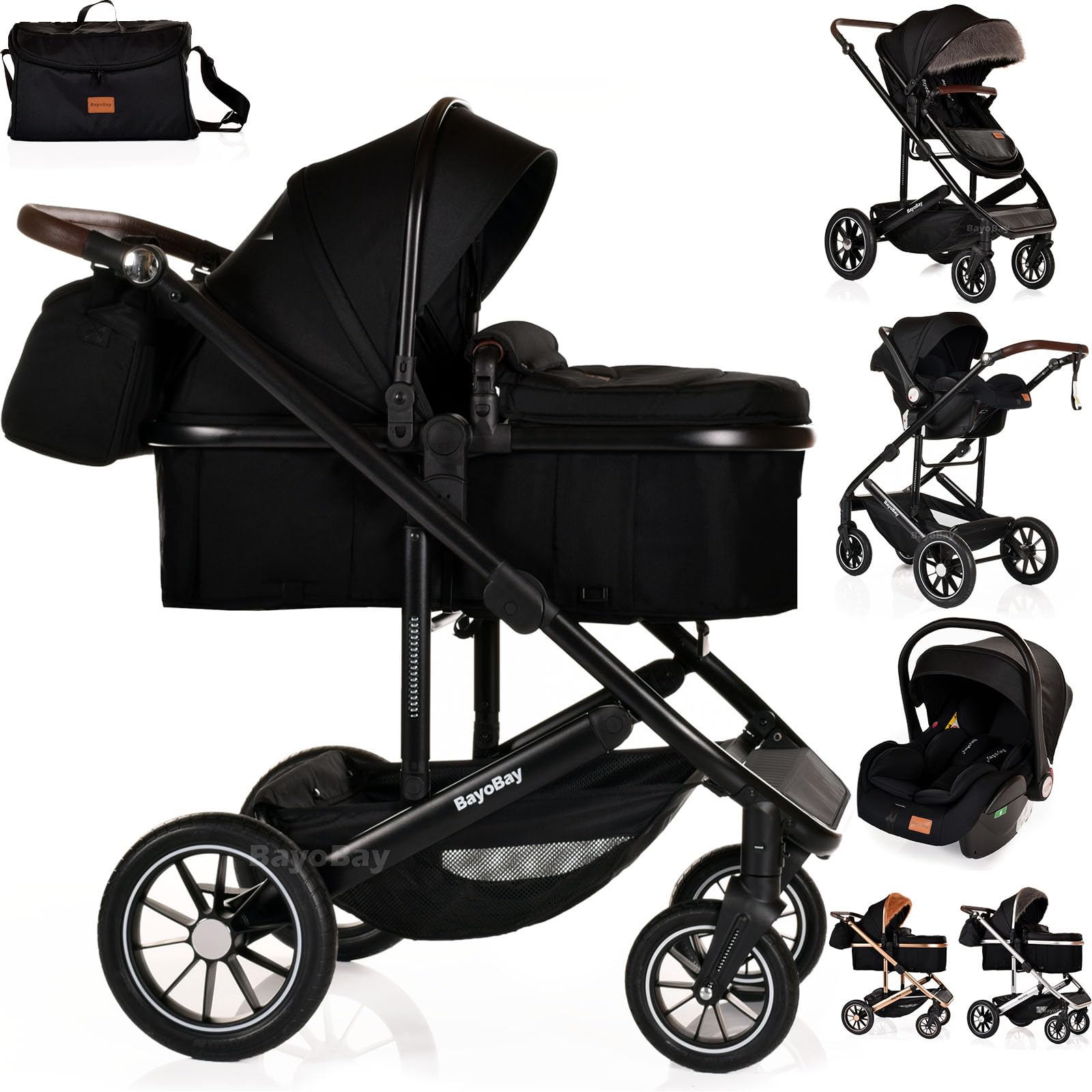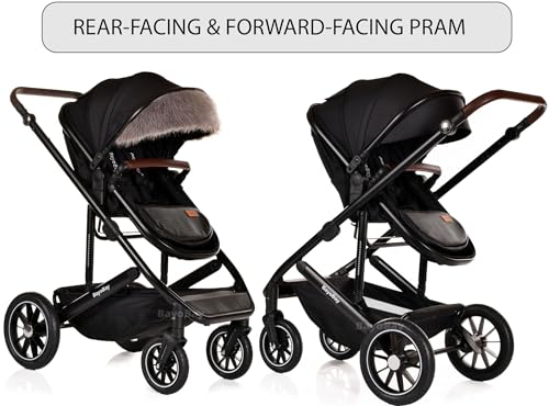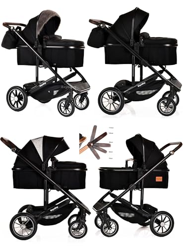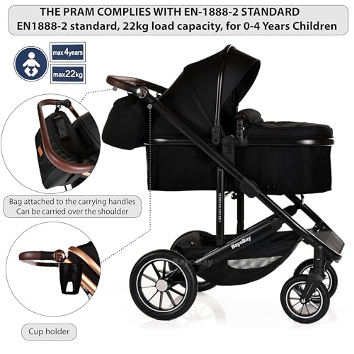 3 in 1 Travel System Baby Pram Buggy with Car Seat Pushchair Carriage Child Lightweight Folding Stroller for Newborns Toddlers from Birth up to 22kg New 2025 Style (BB1 – Black – Black, BB1)