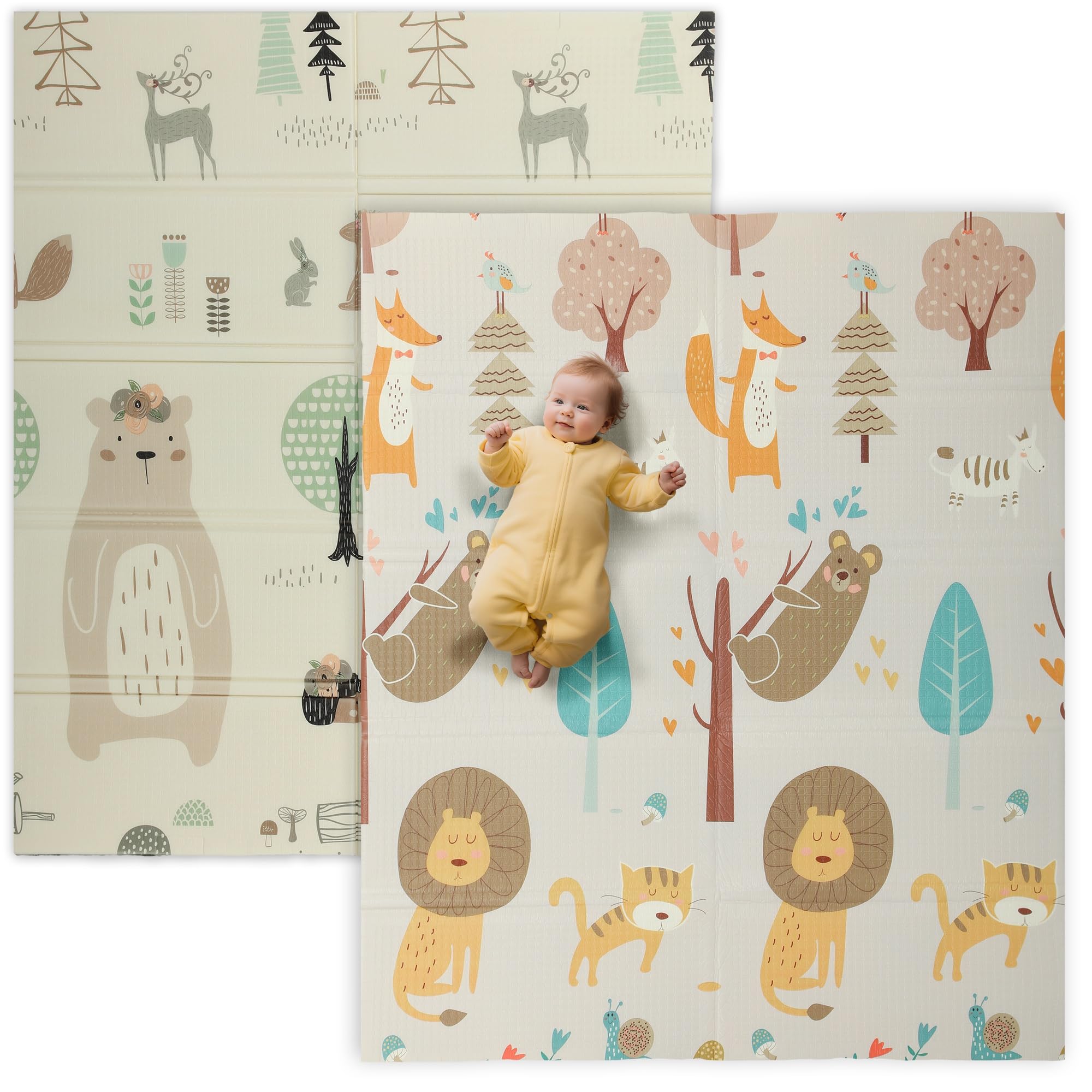 AIYAPLAY Baby Play Mat Double Sided, Foldable & Reversible Activity Playmat, Waterproof Kids Foam Crawling Mat for Outdoor Indoor Playtime Picnics, 177 x 146 x 1.5cm, Animal Theme