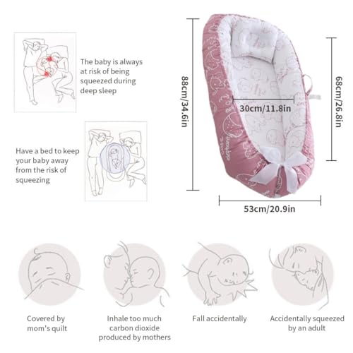 The baby lounger is safer and comfortable for babys skin; The newborn lounger pod creates a soft and soothing environment for babys sleeping; The baby cushion lounger helps with common newborn sleeping issues like wanting to sleep in a parents arms or frequent waking.