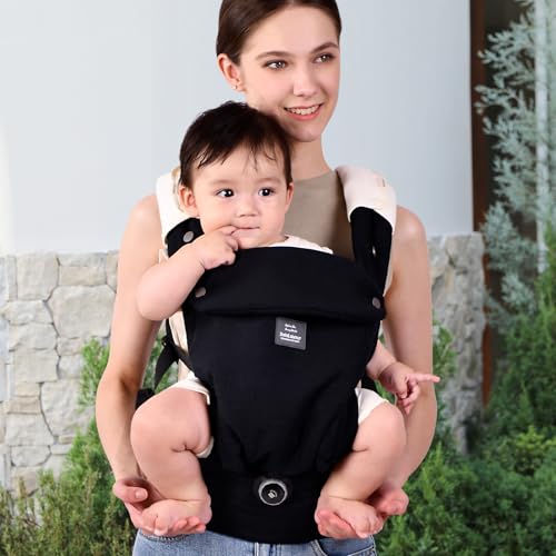 Bebamour Baby Carrier for 3,6-14,9KG Ergonomic, Comfort, Cotton, Front and Back Carrier, Black