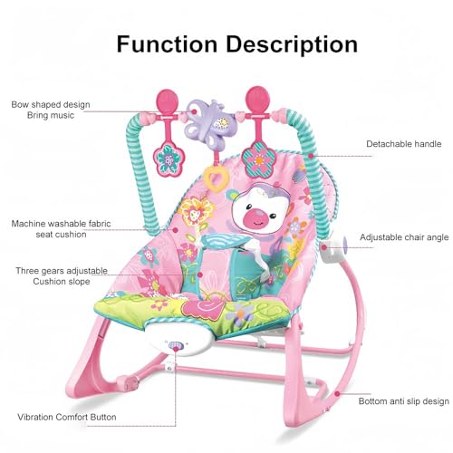 - Soothing Vibrations for Calm Babies: The baby bouncer features gentle VIBRATIONS to soothe fussy babies, helping them relax and settle down quickly—perfect for emotional comfort