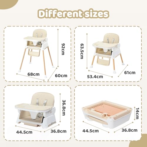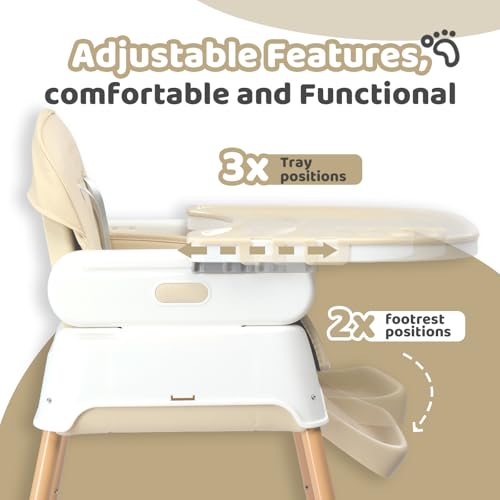 - [3-in-1 Versatile Design for Growing Kids]: This baby high chair transforms effortlessly between feeding chair, play chair and booster seat – perfect from first solids (6 months) through toddler years (up to 3 years/20kg). The 2-height adjustment adapts to any table or play space.