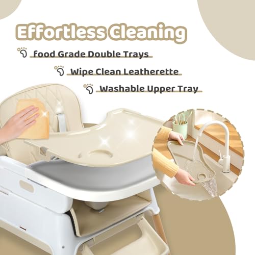 - [Stress-Free Cleaning After Every Meal]: The detachable double tray (3 adjustable positions) pops off for dishwasher cleaning, while the waterproof seat cover wipes clean instantly. No more scrubbing stubborn food stains!