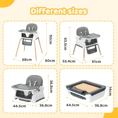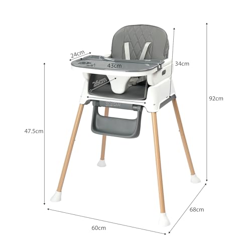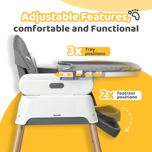- [3-in-1 Versatile Design for Growing Kids]: This baby high chair transforms effortlessly between feeding chair, play chair and booster seat – perfect from first solids (6 months) through toddler years (up to 3 years/20kg). The 2-height adjustment adapts to any table or play space.
