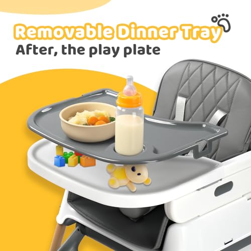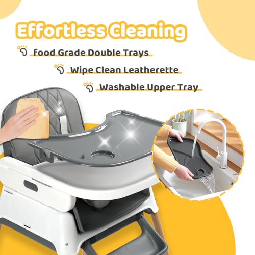- [Stress-Free Cleaning After Every Meal]: The detachable double tray (3 adjustable positions) pops off for dishwasher cleaning, while the waterproof seat cover wipes clean instantly. No more scrubbing stubborn food stains!