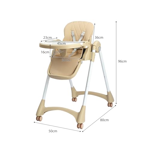 - [Space-Saving & Mobile]: Folds flat to just 20cm wide (20×50×104cm) for compact storage. Four 360° swivel casters let you move the chair effortlessly between rooms while keeping it securely in place during meals.
