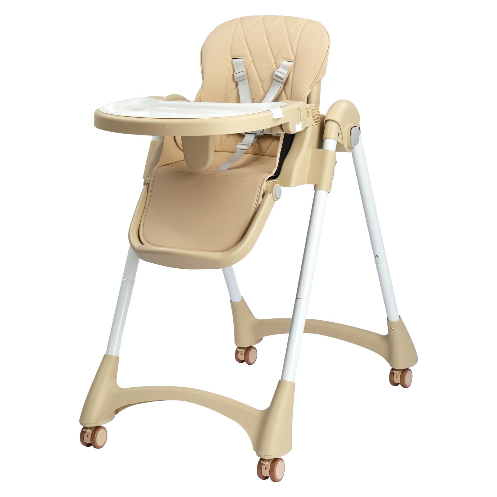 Portable and Convenient: The detachable tray and four locking casters make it easy to move the high chair around. The one-touch folding design allows for easy storage and transport.