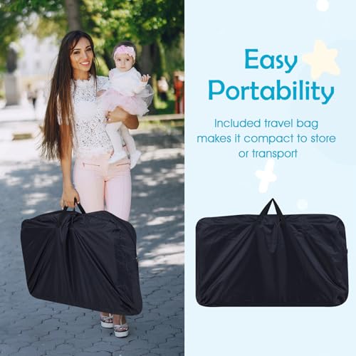 - 【Easy Portability & Mobility】This bedside bed is fitted with 4 lockable universal wheels to move smoothly around the house. The included travel bag makes it compact to store or transport, ensuring that you can provide a familiar sleeping environment for your baby, wherever you go.