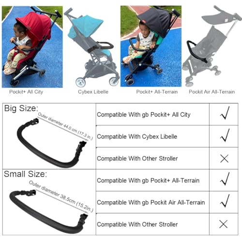 - 1. (Bumper Bar Compatibility): We offer two sizes of bumpers, Big size – ONLY compatible with gb Pockit+ All City and Cybex Libelle strollers, Small size – ONLY compatible with gb Pockit Air All-Terrain and gb Pockit+ All-Terrain strollers. Please choose the bumper according to your stroller model. Add a bumper to your baby stroller to make your journey more fun and safe.