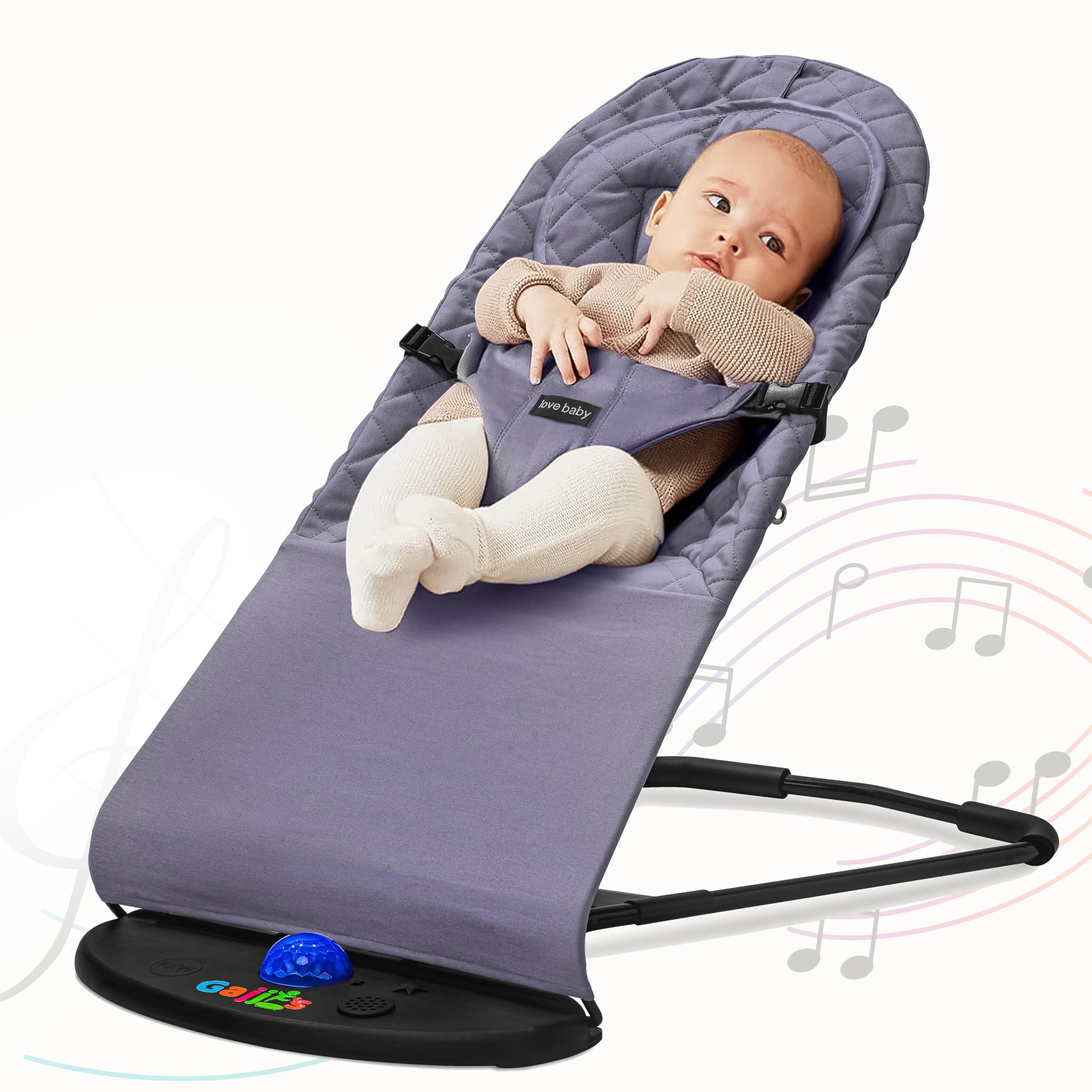 FK Sports Foldable Baby Bouncer, Adjustable Baby Bouncer Chair for Indoor & Outdoor Use, 3 Recline Positions, Includes Light, Music & Neck Pillow, for Babies 0–6 Months, Up to 6kg (Grey)