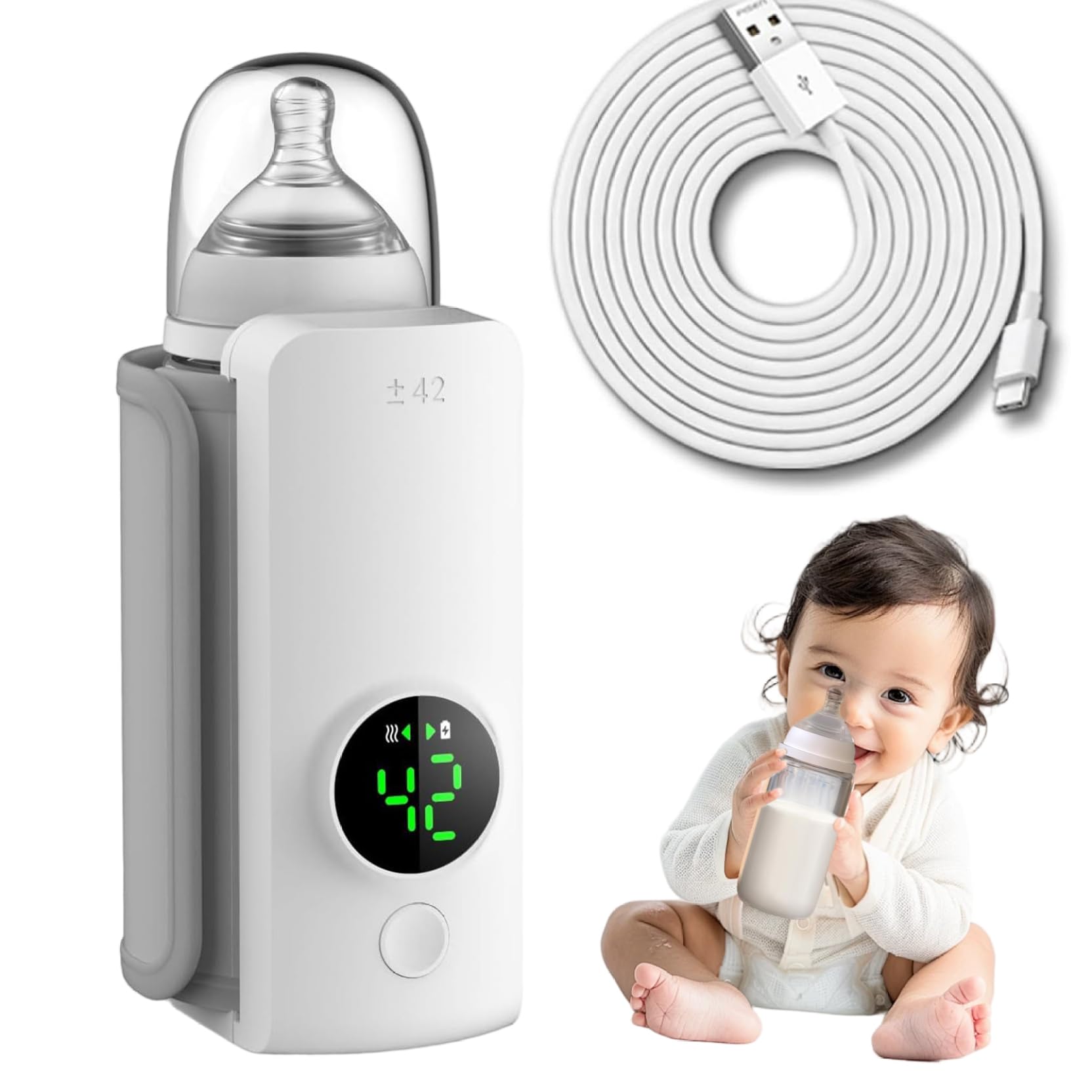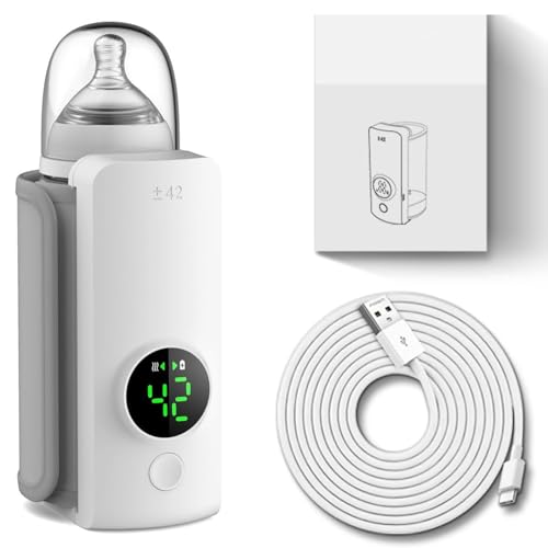 Portable Bottle Warmer, 6-Temperatur Fast Heating Cordless Travel Bottle Warmer, Rechargeable USB 6000mAh & Digital Display for Breastmilk Baby Formula combines convenience and safety in one compact device; designed specifically for busy parents, this cordless milk warmer quickly and evenly warms breastmilk or baby formula using six customizable temperature settings, while its 6000mAh rechargeable battery and USB charging port offer ultimate portability for travel and everyday use, and the clear digital display allows for precise temperature monitoring to prevent overheating, all enclosed in a BPA-free, baby-safe design that’s lightweight and easy to carry, making it the perfect solution for warming bottles anytime, anywhere with peace of mind.