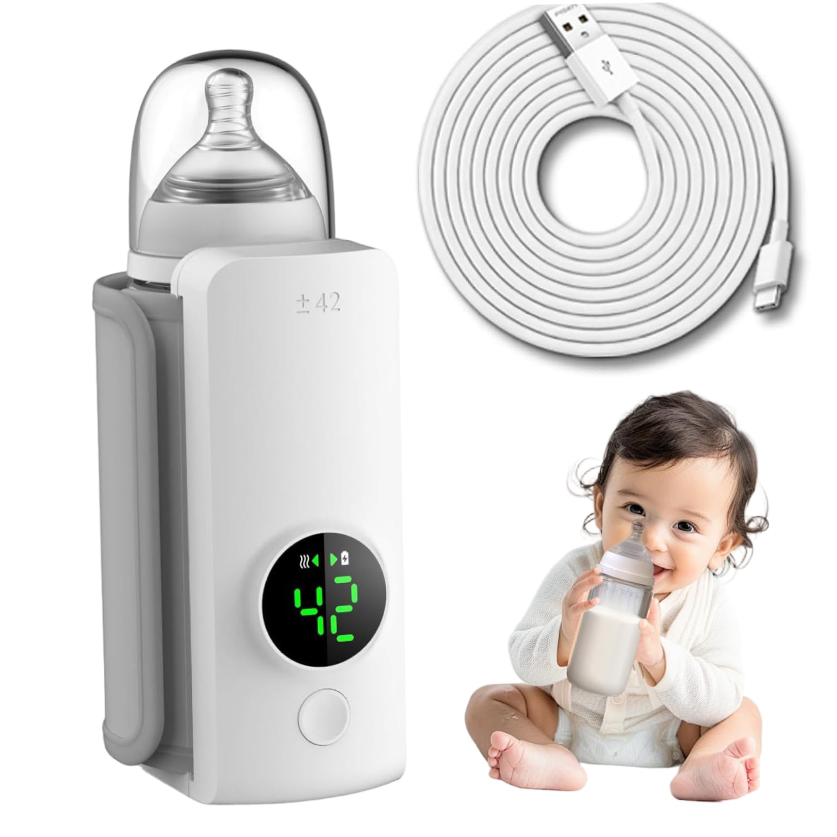 Portable Bottle Warmer, 6-Temperatur Fast Heating Cordless Travel Bottle Warmer, Rechargeable USB 6000mAh & Digital Display for Breastmilk Baby Formula combines convenience and safety in one compact device; designed specifically for busy parents, this cordless milk warmer quickly and evenly warms breastmilk or baby formula using six customizable temperature settings, while its 6000mAh rechargeable battery and USB charging port offer ultimate portability for travel and everyday use, and the clear digital display allows for precise temperature monitoring to prevent overheating, all enclosed in BPA-free, baby-safe design that’s lightweight and easy to carry, making it the perfect solution for warming bottles anytime, anywhere with peace of mind.
