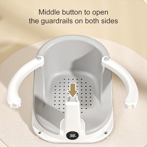Convenient operations: The middle button opens the guardrails on both sides with a click, making it easy for the baby to sit down while ensuring the safety of the baby during bathing.