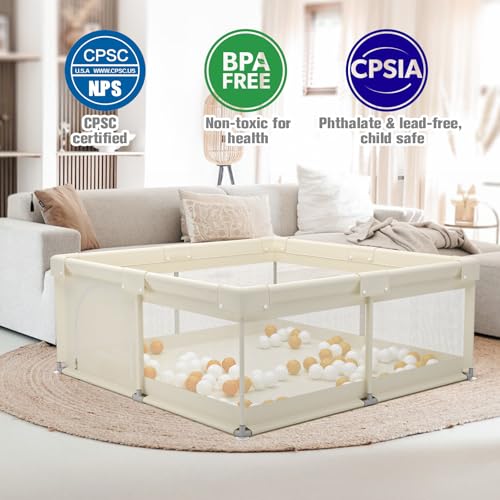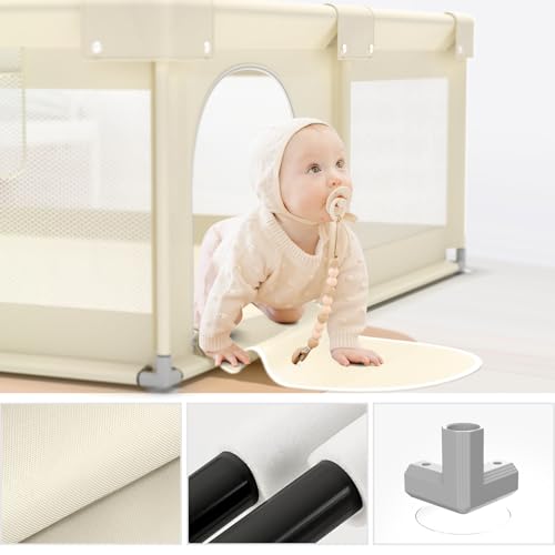 - Large Space: This large playpen (150×150 cm) gives babies room to crawl and play, also works as a safe baby fence play area for parents to join
